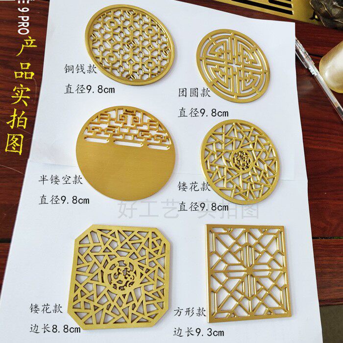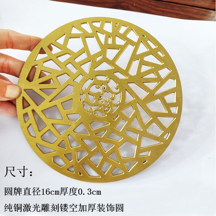 New Chinese style furniture hardware accessories mahogany solid wood office table sofa decoration anti-oxidation pure copper hollowed out round plate