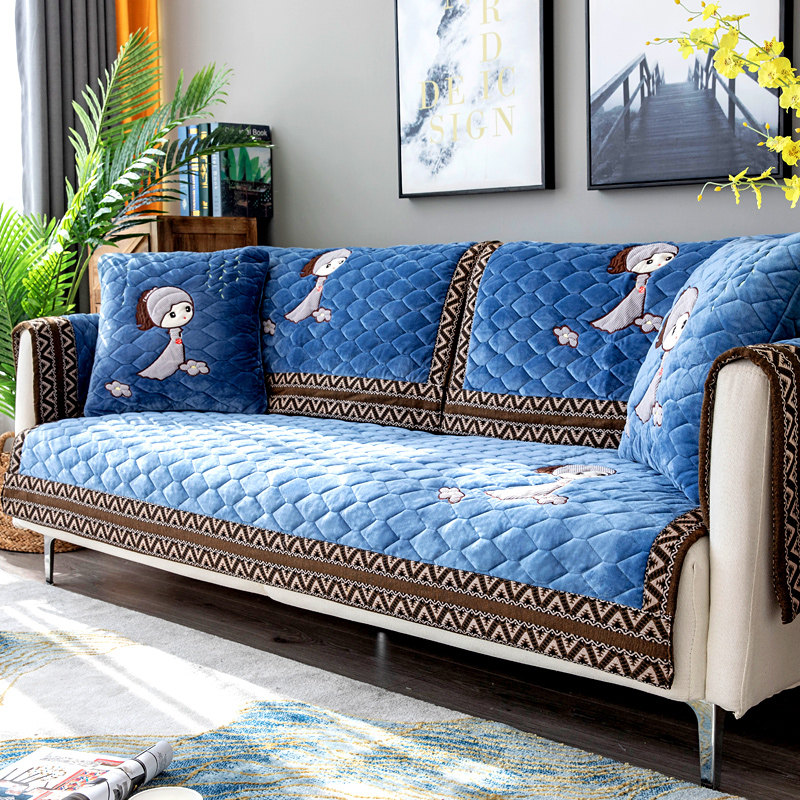 Sofa cushion winter thickening short plush leather anti-slip Nordic minimalist modern cushion sofa cover backrest towels to be made