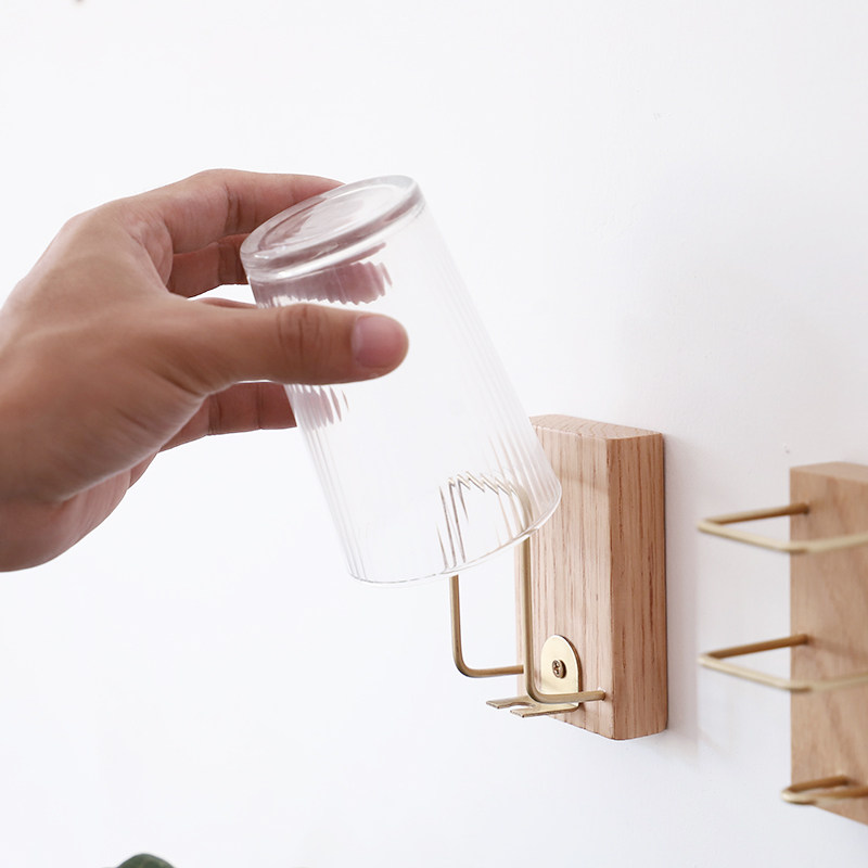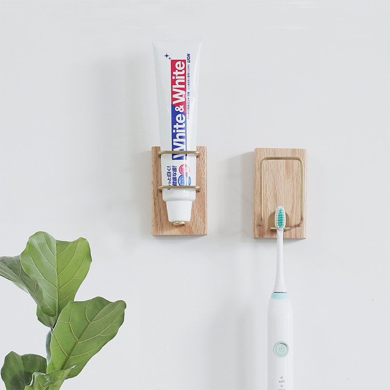 Wall-mounted Tooth Cup Rack Solid Wood Creative Toothbrush Rack Gargling Cup Nordic Toothpaste Rack Free of perforated bathroom Dressing Room Bathroom