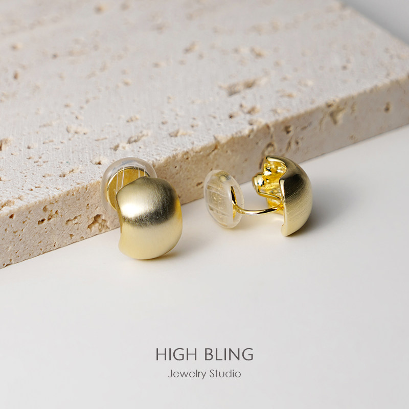 Trendy Classic Golden Bean Bean Without Pain Mosquito Coil Ear Clip Without Earl Hole Woman 100 Hitch Commuter Earrings Earring Female Silver Pin