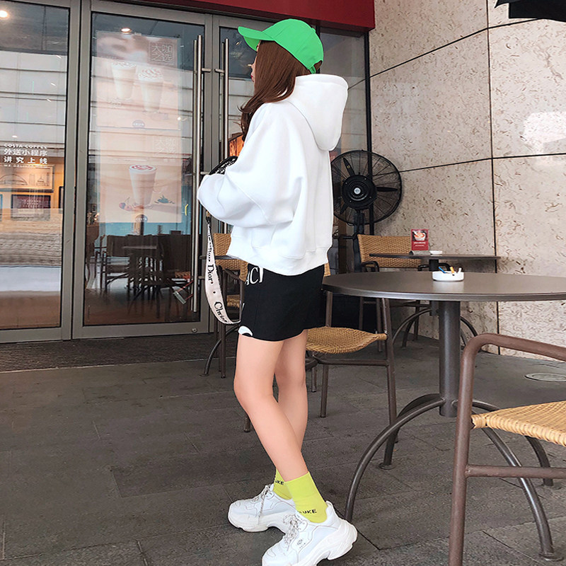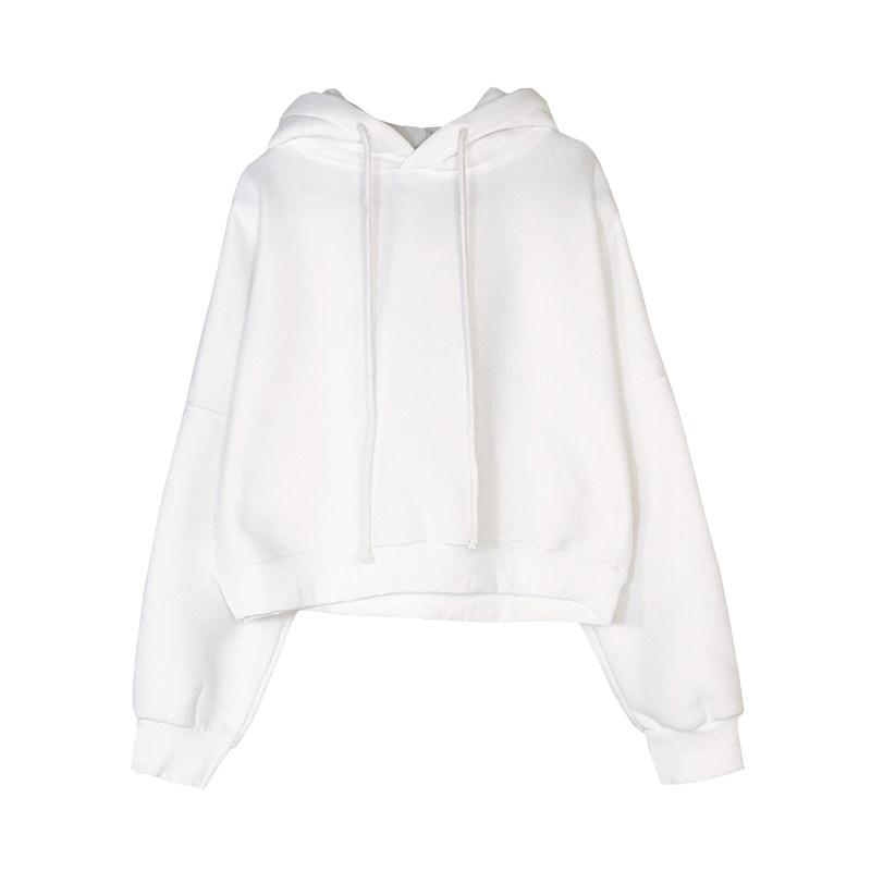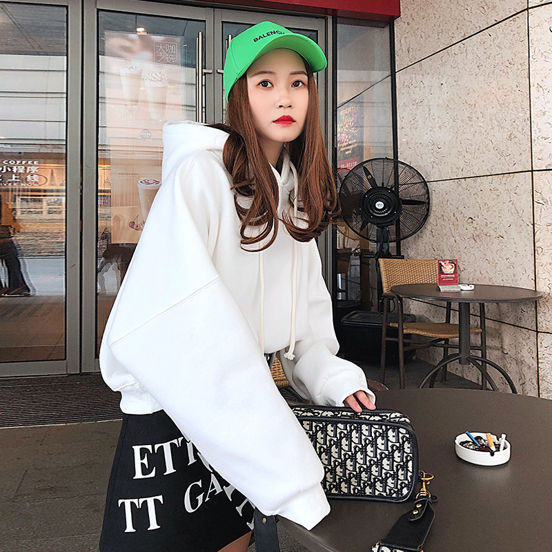 2022 new autumn and winter Korean version with cap loose original Cebu white plus suede thickened long sleeve short version of the necropolis