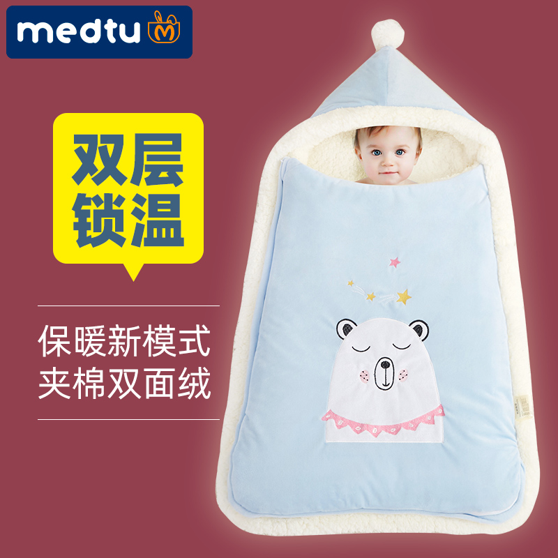 Newborn baby anti-shock sleeping bag autumn and winter thickened newborn baby hug by anti-kick and go out windproof supplies