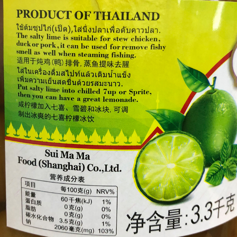 Thai Imported Water Moms Salty Lemon 3300g Port Style Salted Seven Curing Whole Salty Lemon Catering raw material