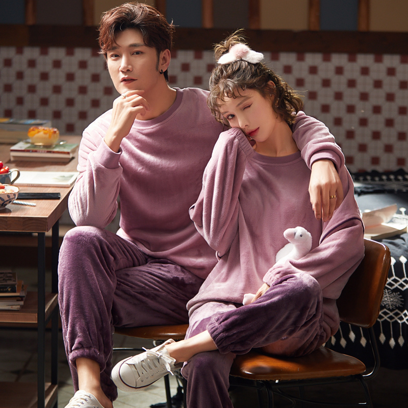 Couple Sleepwear Autumn Winter Style Coral Suede Lady Thicken Plus Flannel Flannel Spring Autumn Men's Home Suit Winter