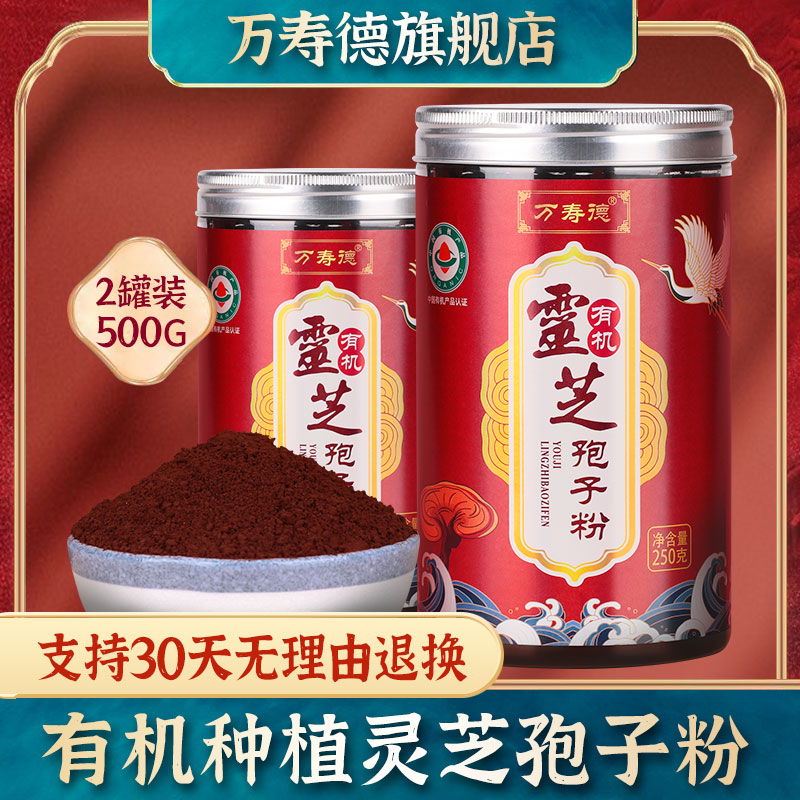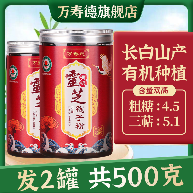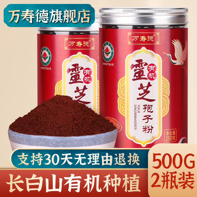 Wanshou de Changbaishan organic Ganoderma lucidum spore powder 500g non-wild broken wall Linzhi robe powder official flagship store