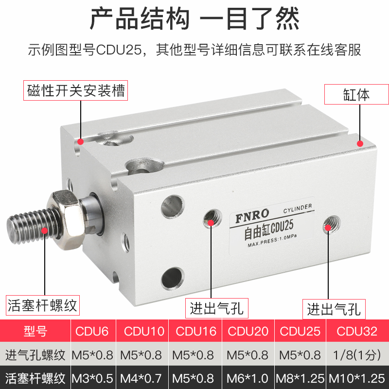 MD Small pneumatic cylinder CDUK CDU10 16 20 25 32-10 15x20*25-30-40-50D-S
