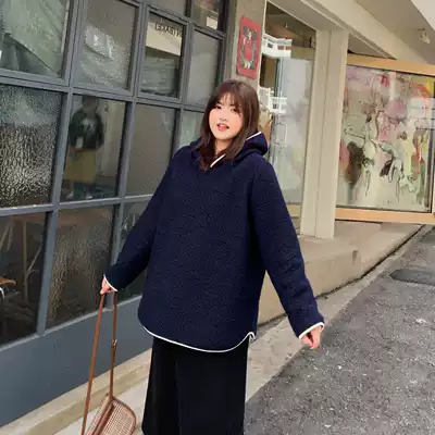 ALIN custom large size sweater women loose fat mm2019 autumn and winter new foreign pie age reduction curly hooded coat tide