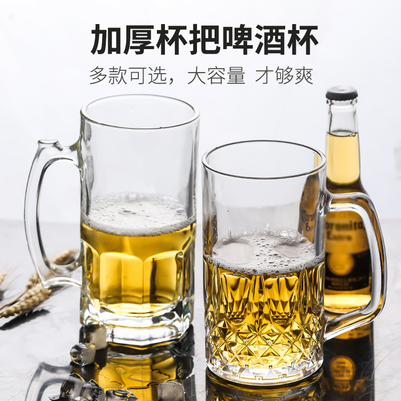 Draft beer mug beer mug large capacity 1000 ml large thickened belt handle glass creative ktv bar wine glass