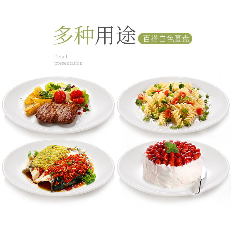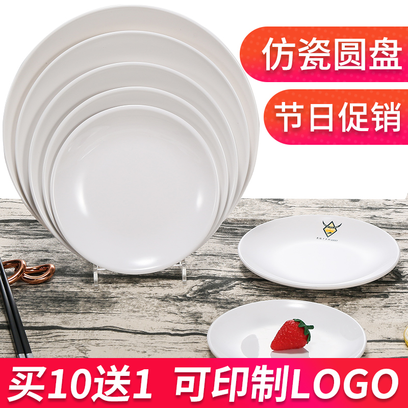 A5 round melamine tableware imitation porcelain plate white plate plastic disc flat plate fast food plate buffet plate plate