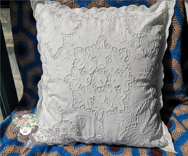 Special stock old goods@exquisite craft full work embroidered cotton pillowcase backrest cushion cover 48-50 inner diameter