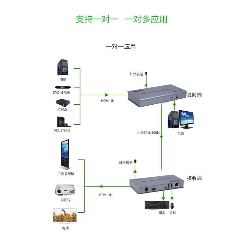 So Feixiang HDMI4K network route extender 120 m network transmission double USB keyboard mouse KVM long distance