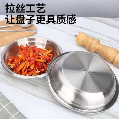 Thickened 304 stainless steel soup plate deep plate household round creative plate set dinner plate plate disc