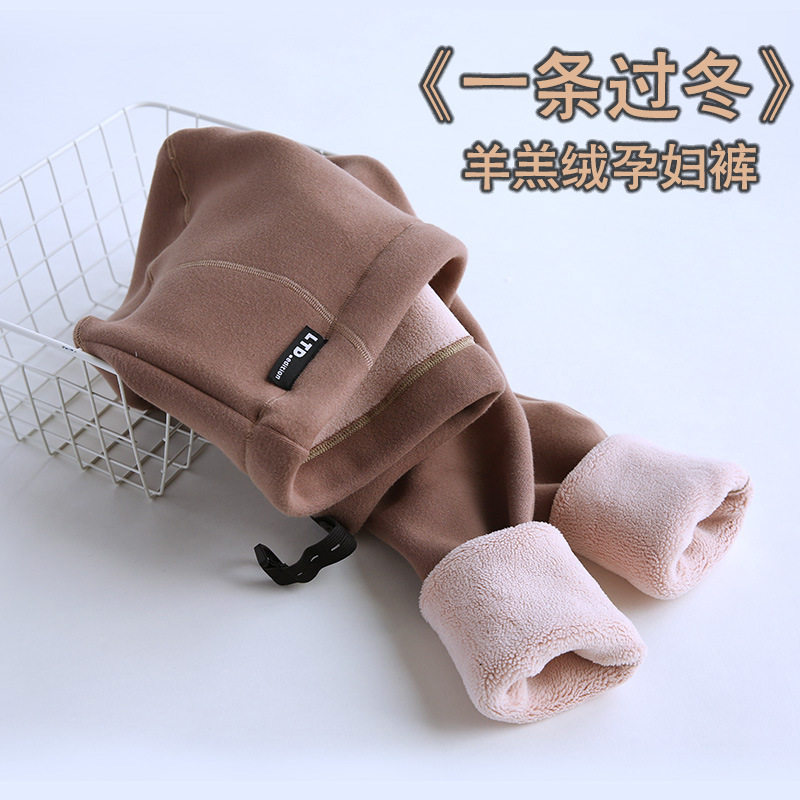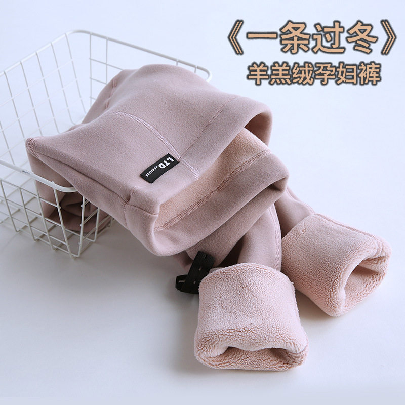 Pregnant woman pants winter thickened with velvety high waist letter lamb suede pregnant woman winter dress pregnant woman gush with underpants warm pants