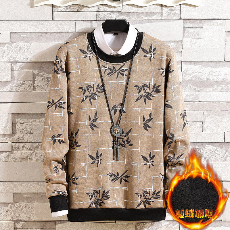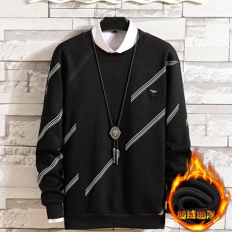 The youth young sweater male teenager Korean edition slim body trend winter plus velvet warm knit bottom top student tide