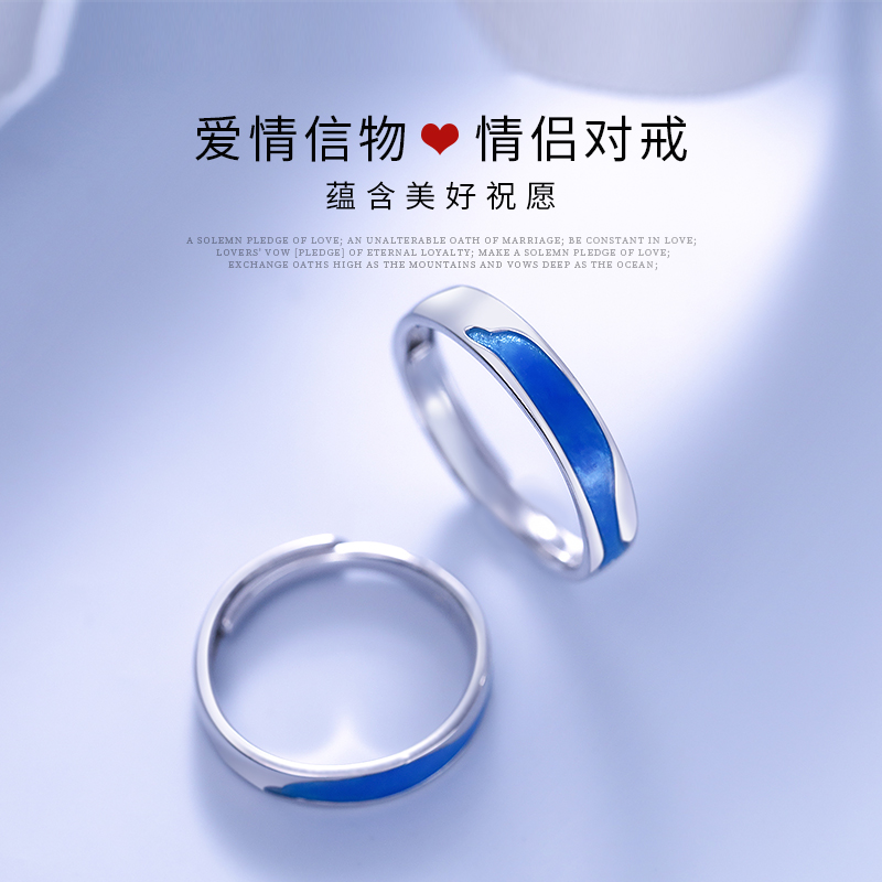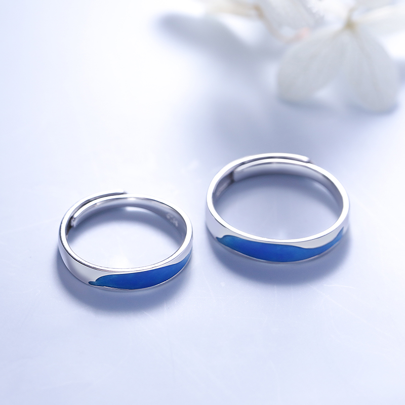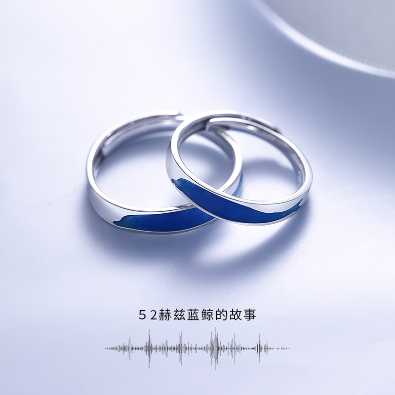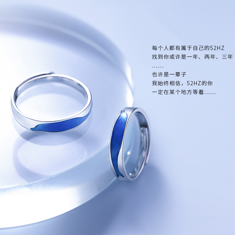 52Hz Blue Whale Couple Ring A pair of sterling silver men and women couples with ring original design opening adjustable opening
