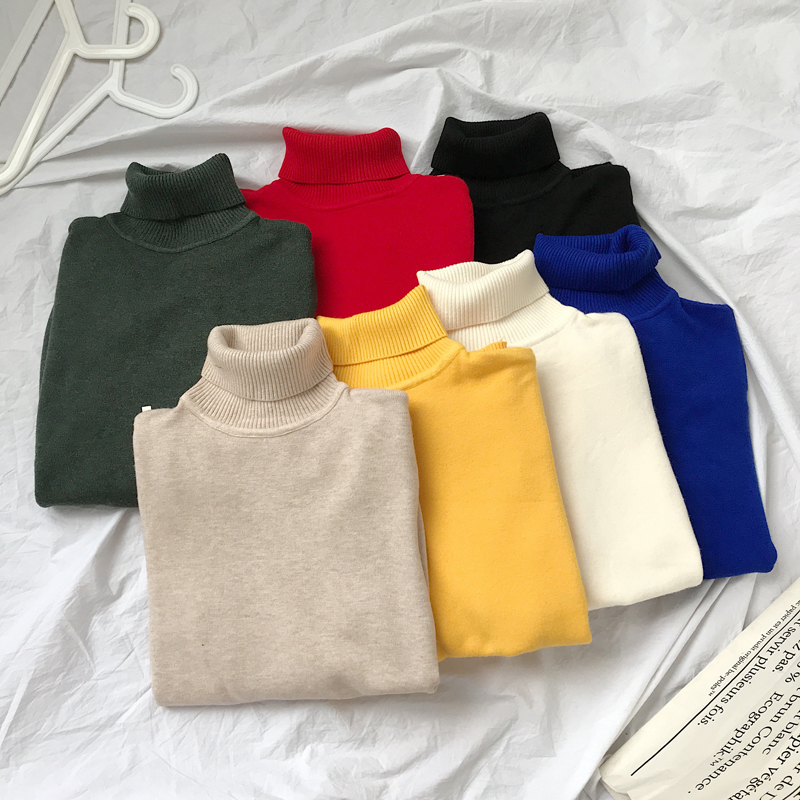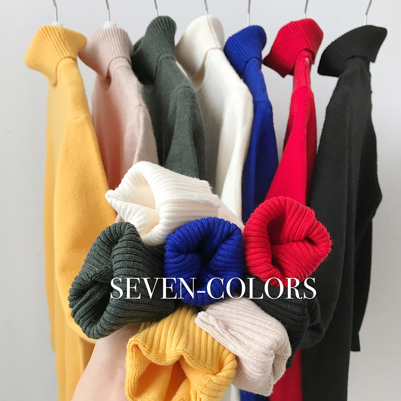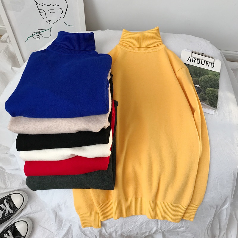 Korean version with long sleeves high neckline sweater male Chaodins Hong Kong wind loose Spring and autumn style jacket pure color beating undershirt-Taobao