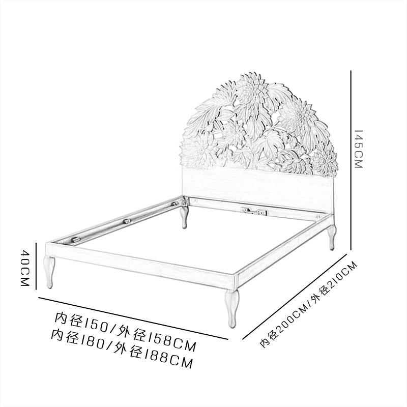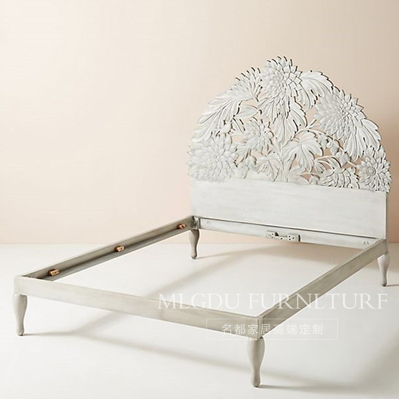 Export carved solid wood bed Korean pastoral carved Indonesian style double bed Southeast Asian style princess bed