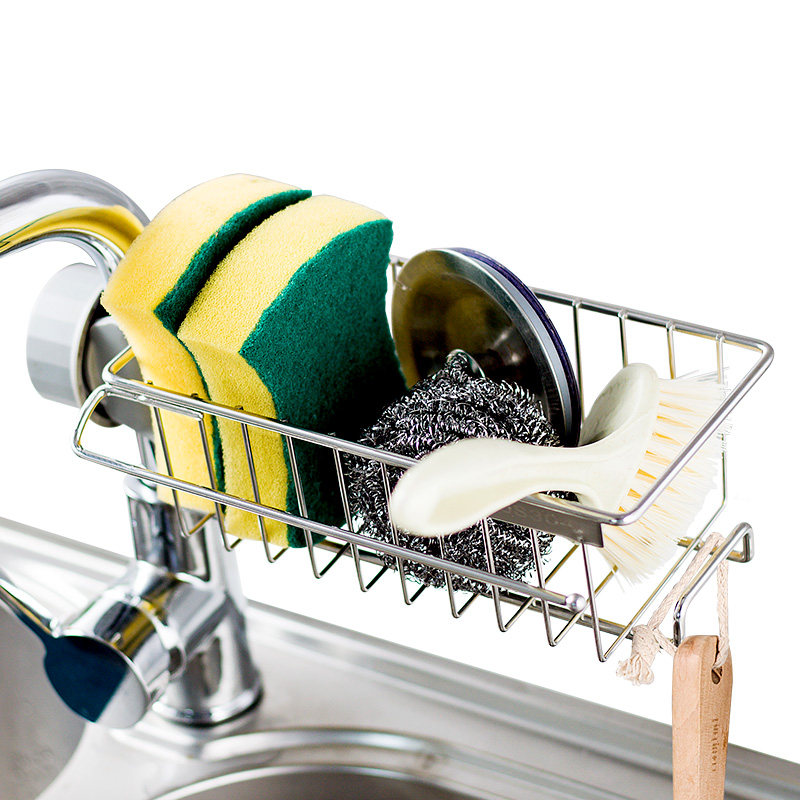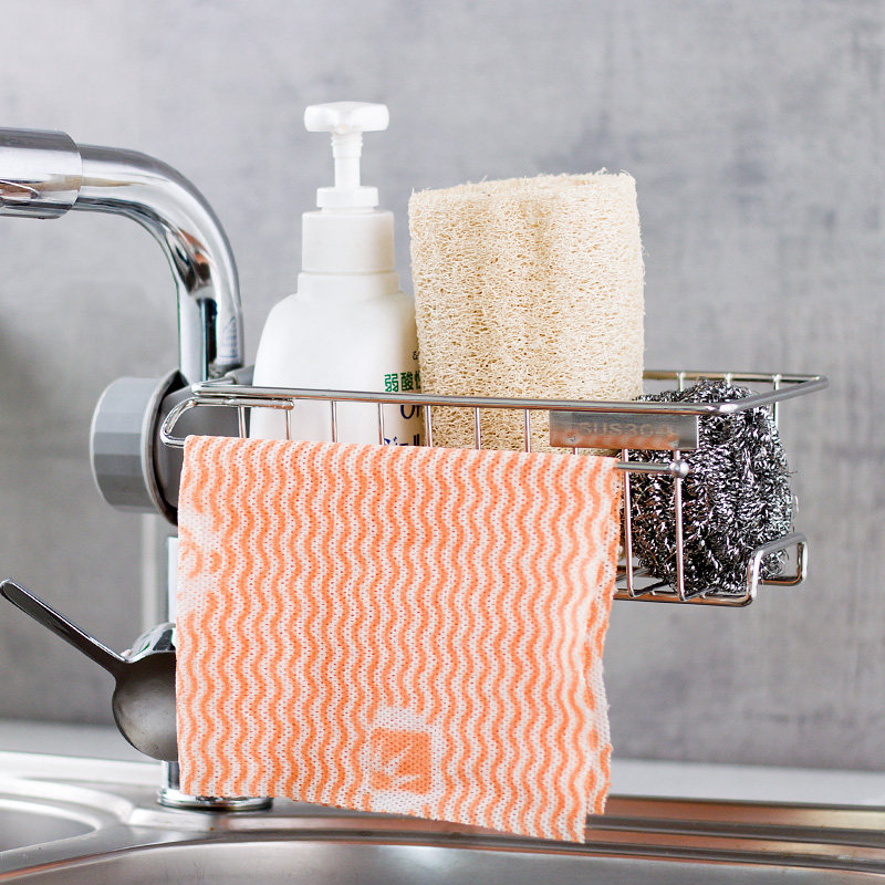 Kitchen tap shelve stainless steel multifunction rotatable pool containing layer frame dishwashing sponge drain basket