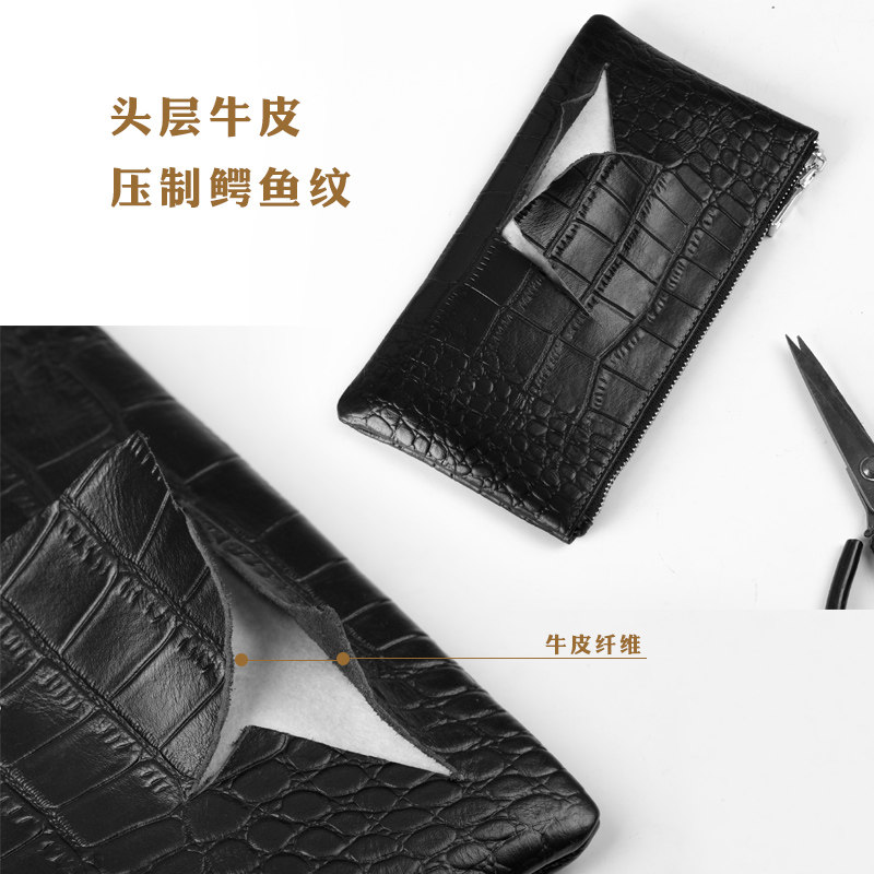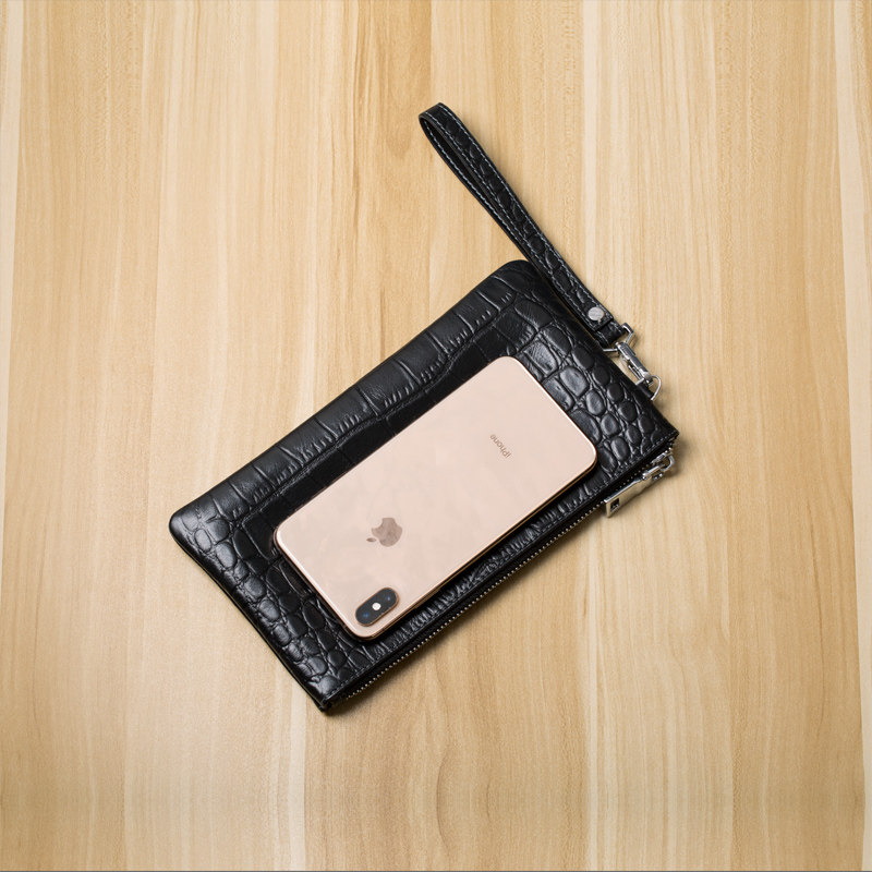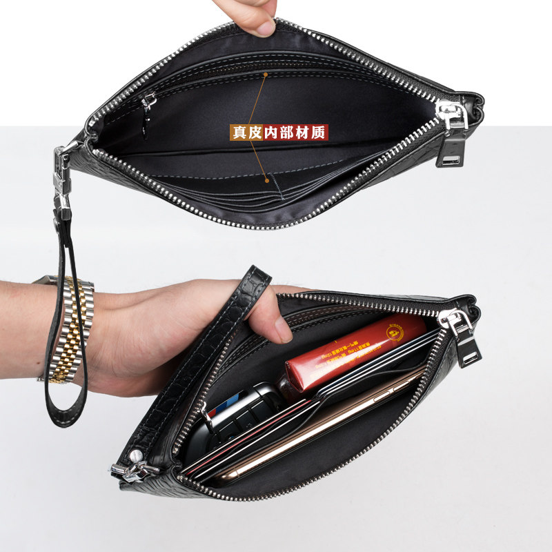 Men's hand grab bag Chater small hand bag Male genuine leather Leisure Crocodile print Bull Strap Wrist Phone bag Men's style bag