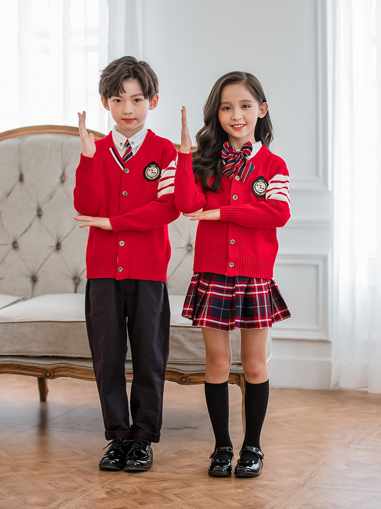 School Uniform Suit Elementary School Students Yinglun Wind Choral Suit Cardiovert Suit Kindergarten Garden Clothes College Wind Autumn Winter Clothing Class Clothes
