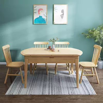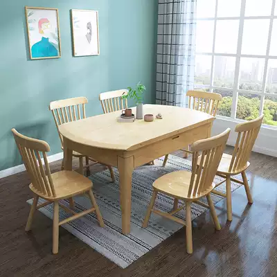 Nordic solid wood dining table and chair combination retractable folding square modern simple small family rice table
