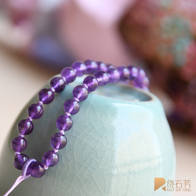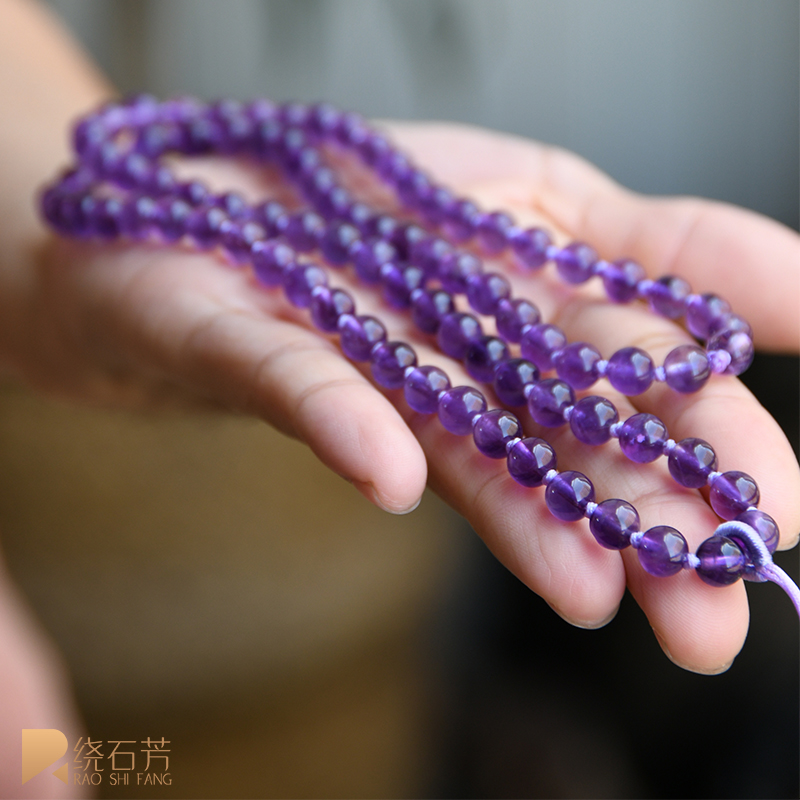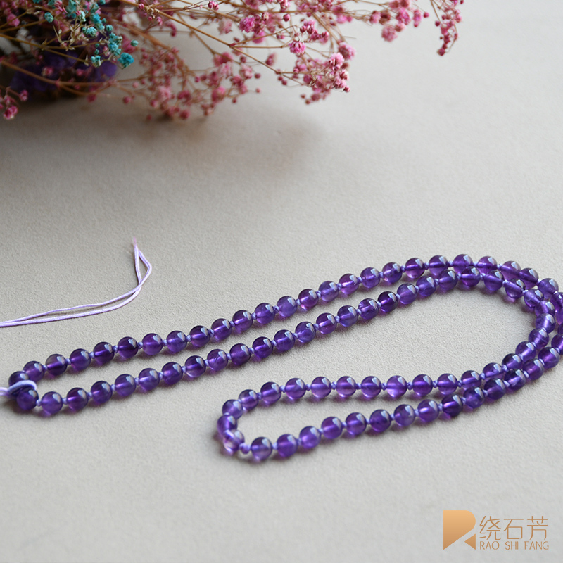 New pendant lanyard women's natural 6mm light amethyst lavender hand-woven high-end bead chain lanyard wild