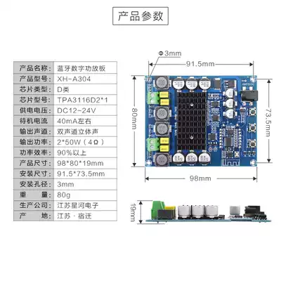 XH-A304 New Version 5 0 Bluetooth digital power amplifier board TPA3116D2 Bluetooth distortion dual channel amplifier board