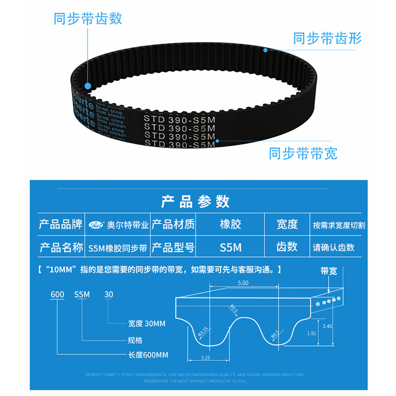 Rubber timing belt STD S5M-385 390 circular arc tooth transmission belt 77 78 teeth synchronous industrial belt