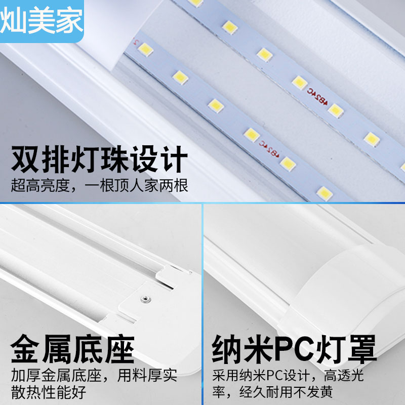 led purifying lamp all-in-one double pipe triple anti-daylight lamp full strip with lamp shade office super-bright light tube