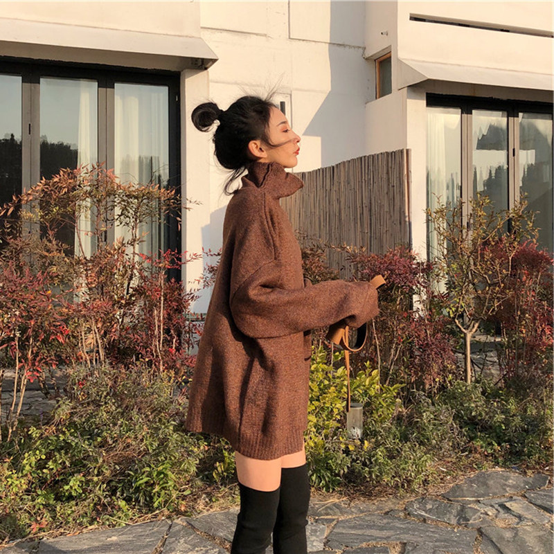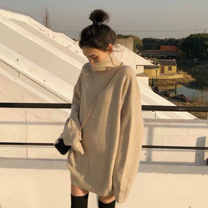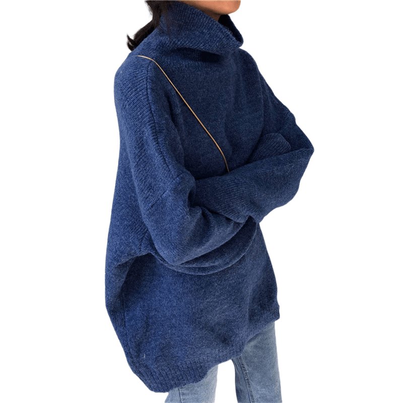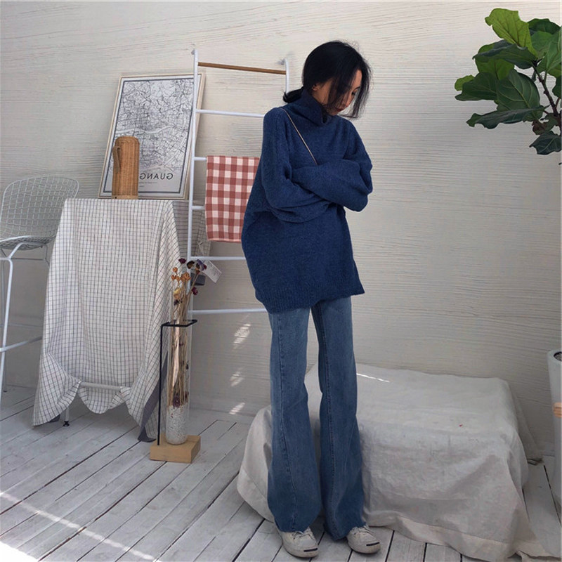 Klein Blue Sweater Women's New Loose Joker Sweater Lazy Wind High-collar Pullover Premium Top Style Top