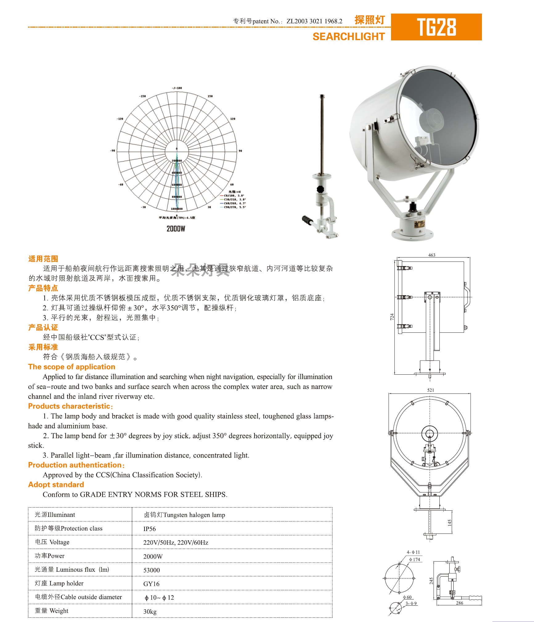 Starfish Marine Searchlight Assembly TG26 TG27 TG28-A220V1000W Stainless Steel Flood Light