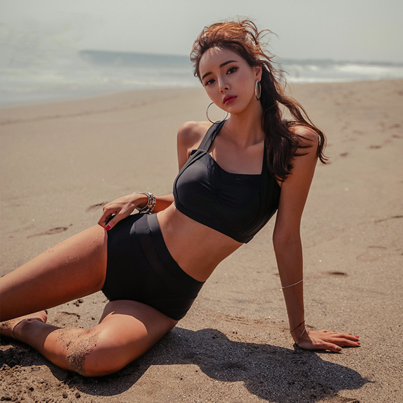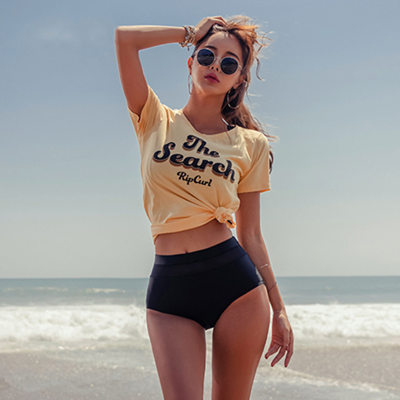 Korean ins swimsuit women's summer sexy white three-piece small chest gathered split bikini beach vacation swimsuit