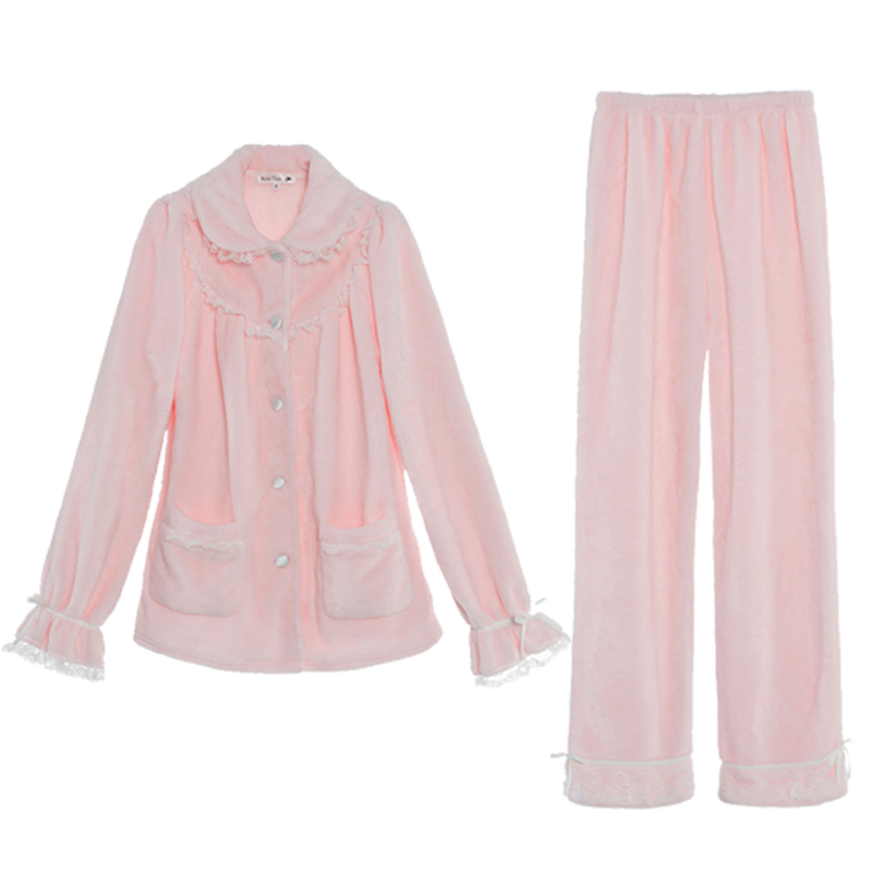 RoseTree Princess Flannel Pajamas Women's Autumn and Winter Thickened Warm Coral Fleece Cute Home Clothes Set