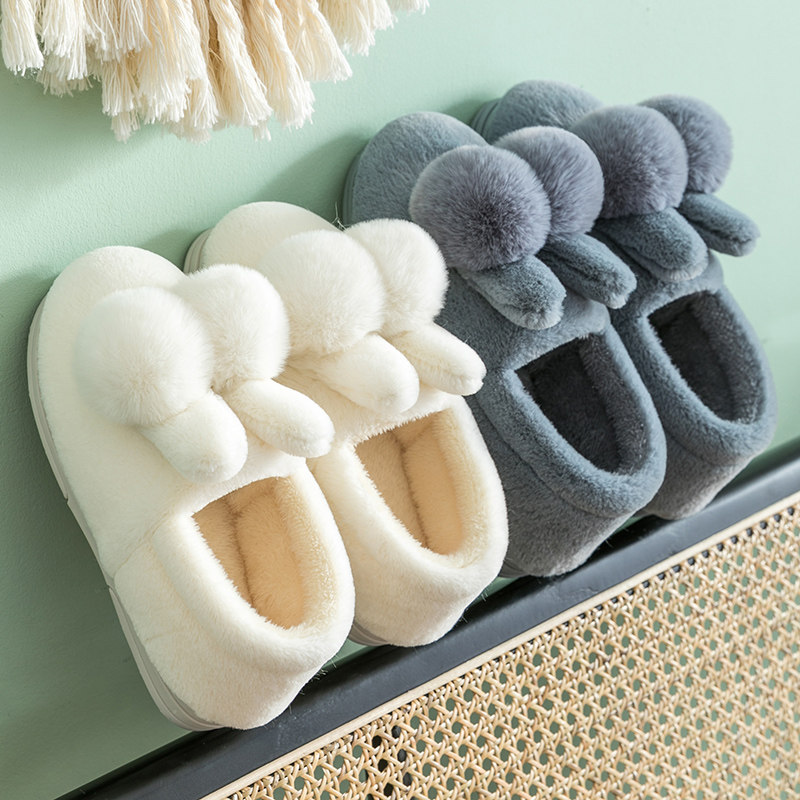 Autumn and winter bag heel warm plush shoes women's couple cotton slippers women's home use cute indoor postpartum beanie shoes women
