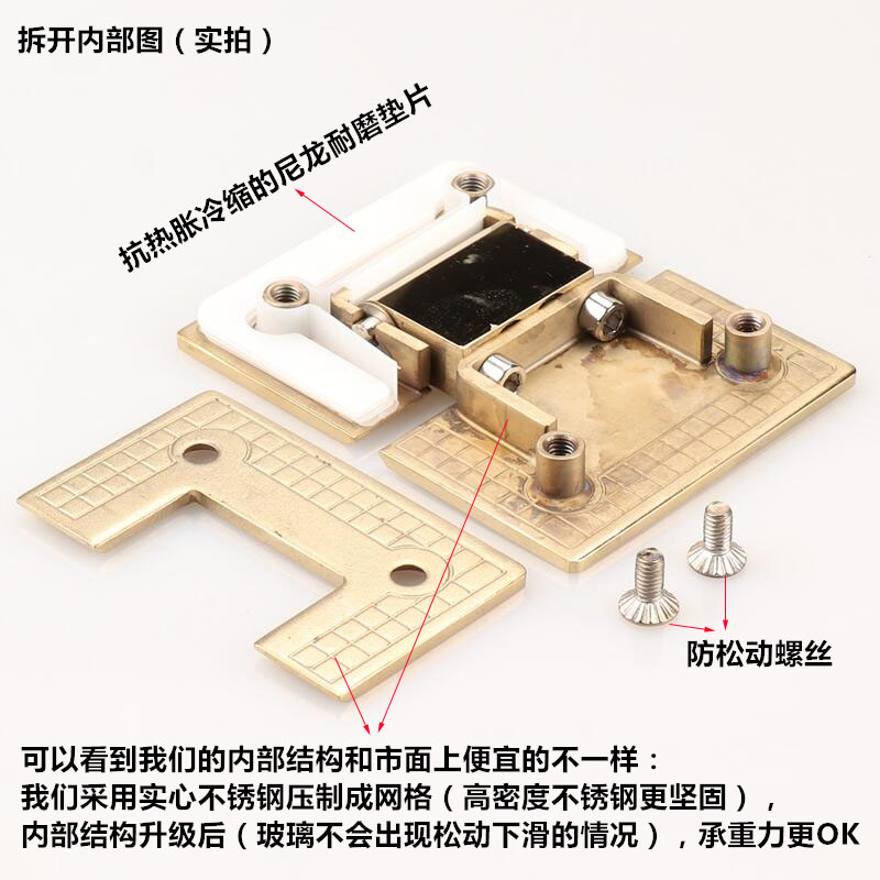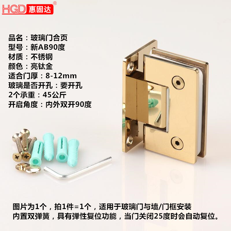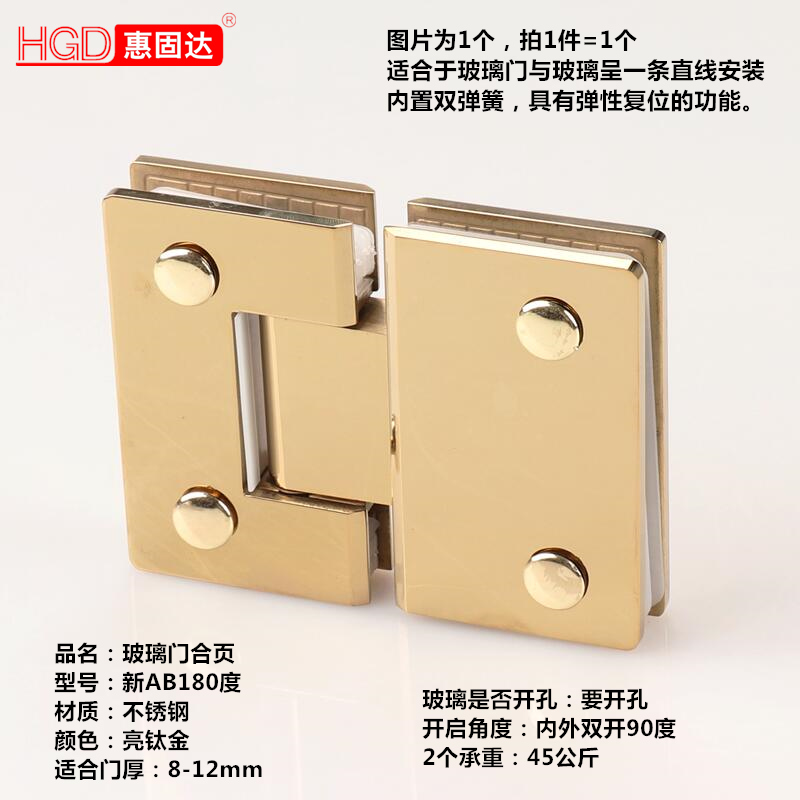 Bright gold thickened stainless steel glass door hinge Bathroom glass door hinge Elastic double open bathroom clip hinge