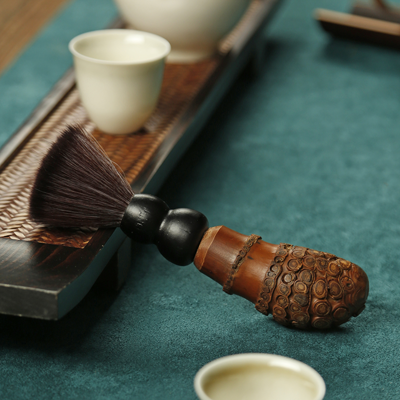 Boutique bamboo root pot pen tea brush sweep tea tray tea pen does not fall off bamboo pot solid wood kung fu tea set accessories