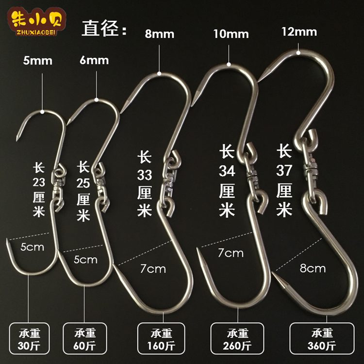 New products 304 Stainless Steel Hanging Meat Hook Pork Hook cow goat pickled salted meat Slaughter Meat Butcher Meat supermarket Coarse Single Hook
