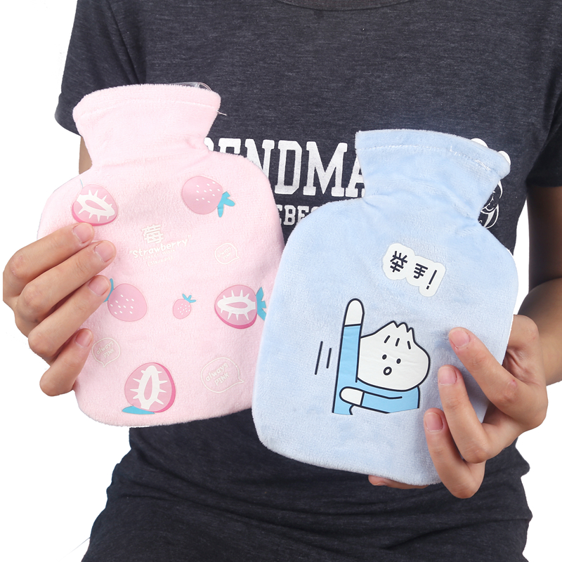 Water injection hot water bottle portable warm hand treasure Plush cloth cover thickened rubber water bag warm baby warm belly cute girl