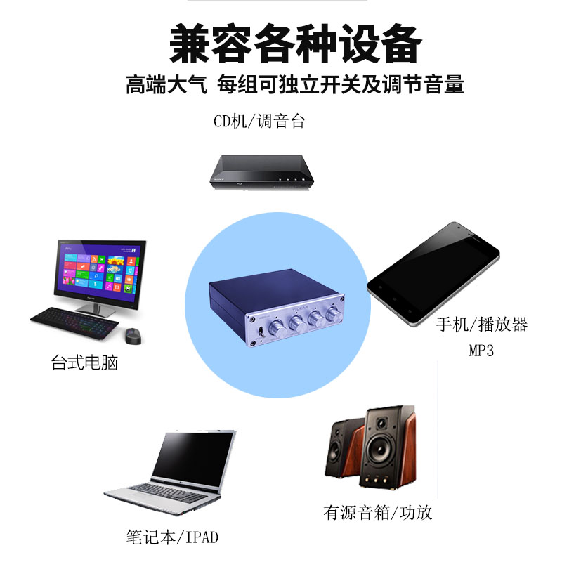 1 in 4 out distortion-free audio switcher Audio source signal selection distribution RCA gold-plated Lotus terminal 1 in 4 out