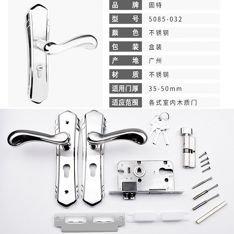 Solid door lock 304 stainless steel indoor bedroom lock indoor door room door lock minimalist wooden door Makeup Room Door Lock
