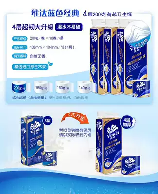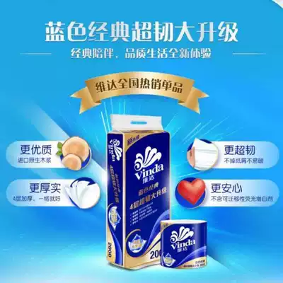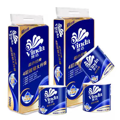 Vader roll toilet paper 4-layer cored roll toilet paper 2000g Blue classic household toilet paper 20 rolls of two-lift affordable roll toilet paper