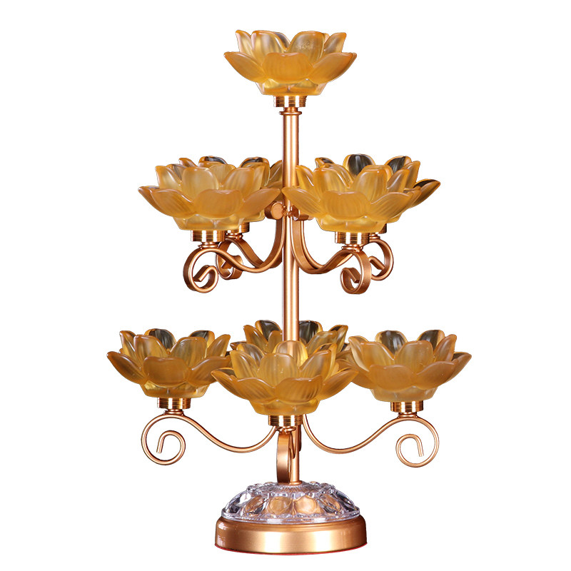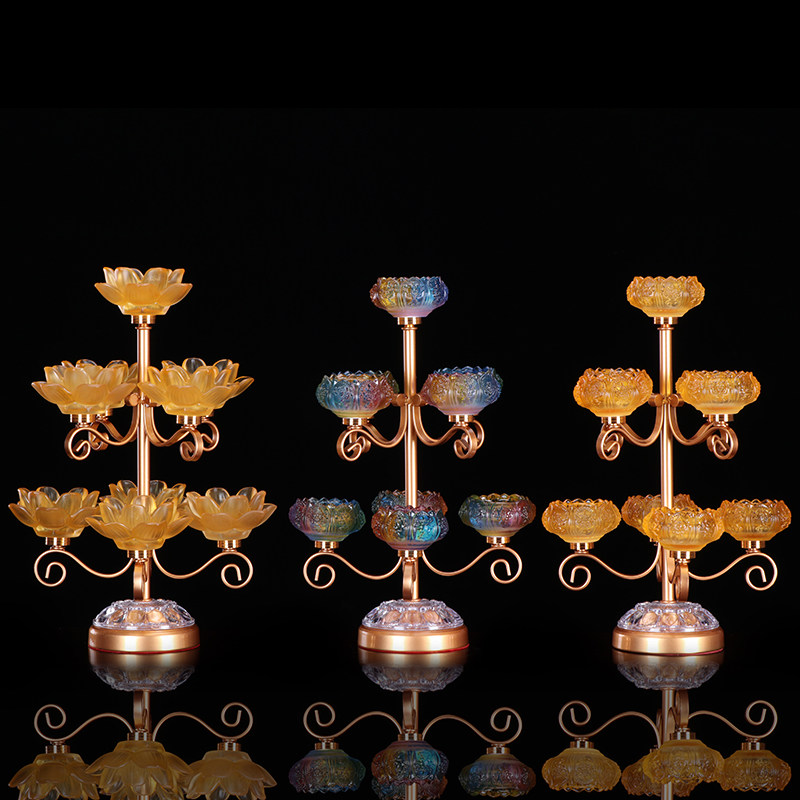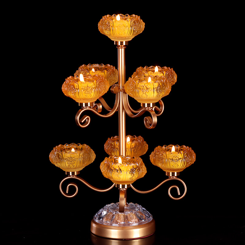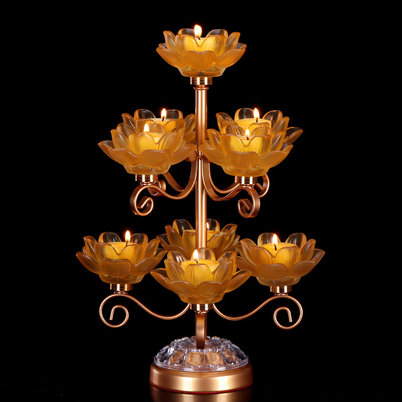 Roundtone craft products Nine glass lotus lamp ghee lamp lamp candlestick household Buddha lamp frame long lamp frame