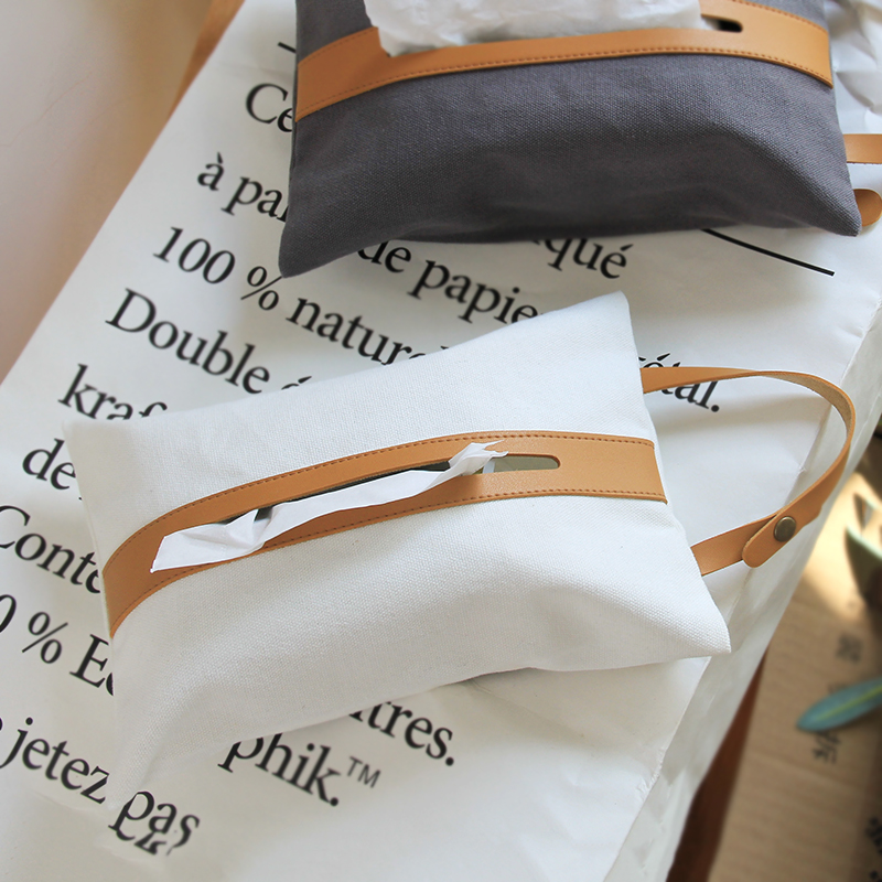 Warm House Small Crowdhang Paper Towel Bag Vehicular Paper Towel Cover Cafe Day Style Cotton Cloth Art Plant Tanning Leather Tissue Box