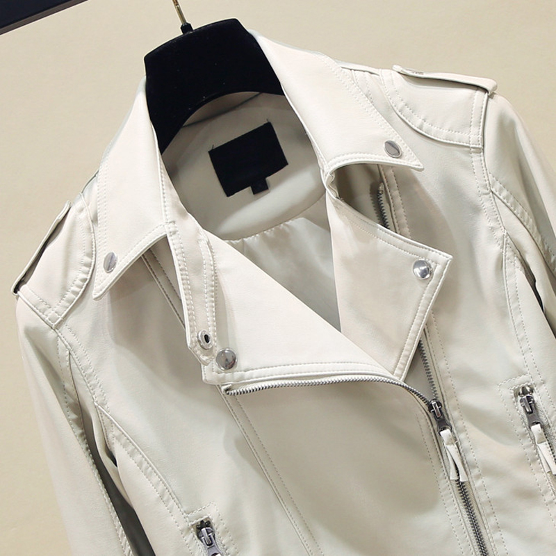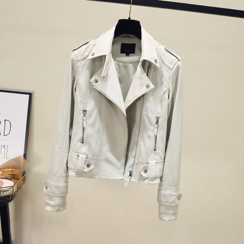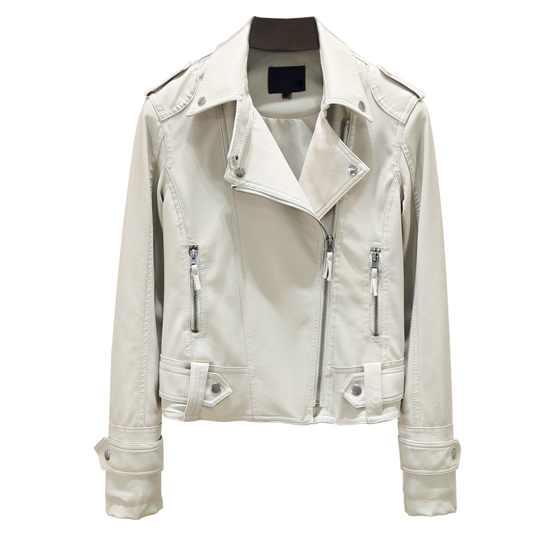 Hong Kong Tide Brand 2022 New Korean Edition Versatile White Leather Jacket Women's Short Motorcycle Wash Leather Jacket