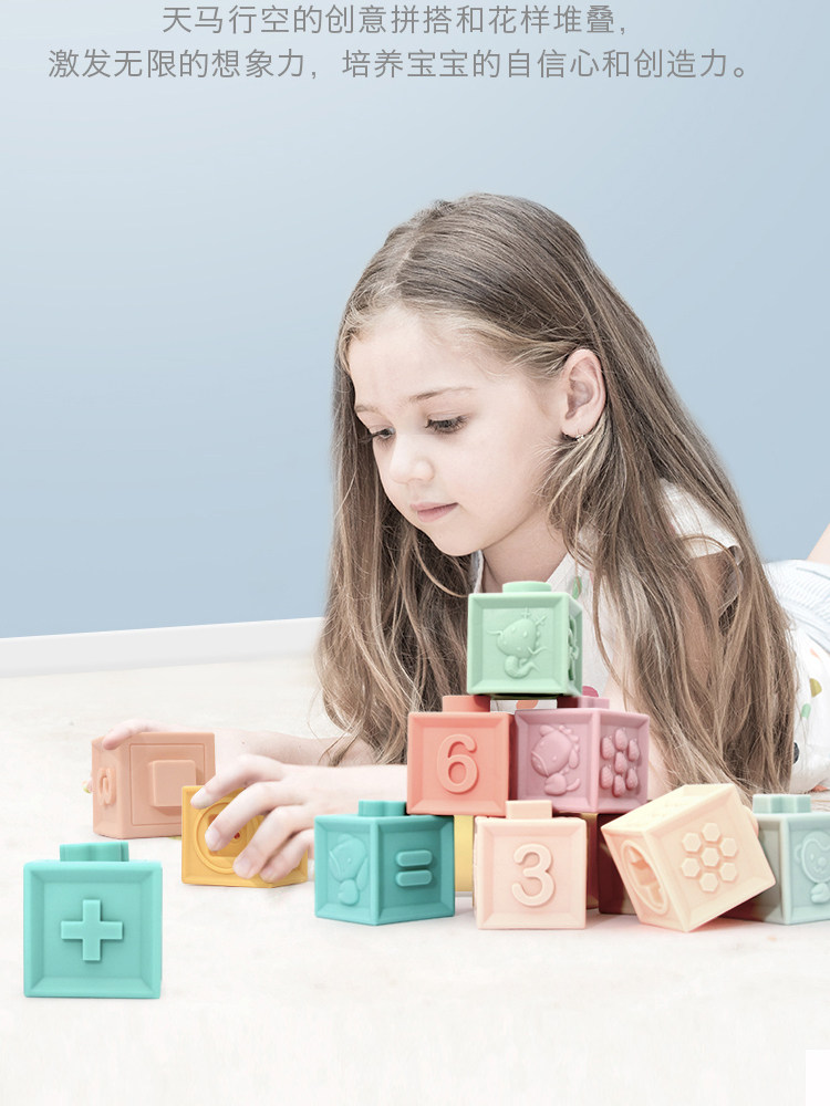 Geometric digital baby soft rubber building blocks can chew and boil 1-year-old baby educational toys children's relief large particles 2