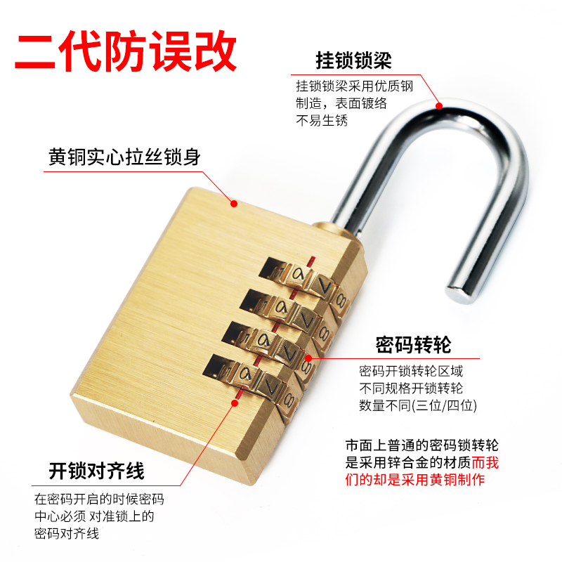 Pure copper password padlock suitcase Suitcase Lock More Wardrobe Bag bag Fitness Room Home Password Small Key Lock