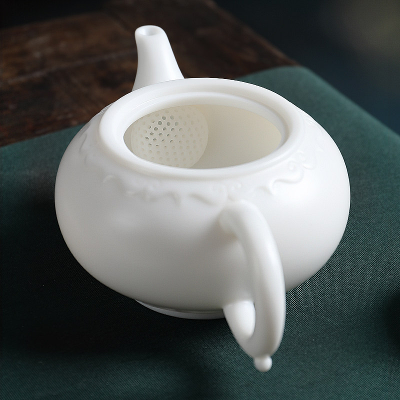 Magic lotus days Chancerized white porcelain teapot tea handmade goat fat jade utiliturg tea with ceramic filter single pot large number
