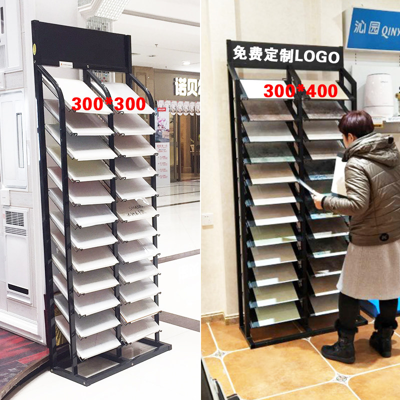 Tile display rack Integral cabinet door display rack Aluminum buckle plate Stone sample swatch shelf Integrated ceiling Wooden floor shelf
