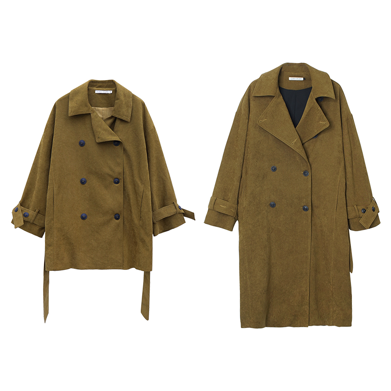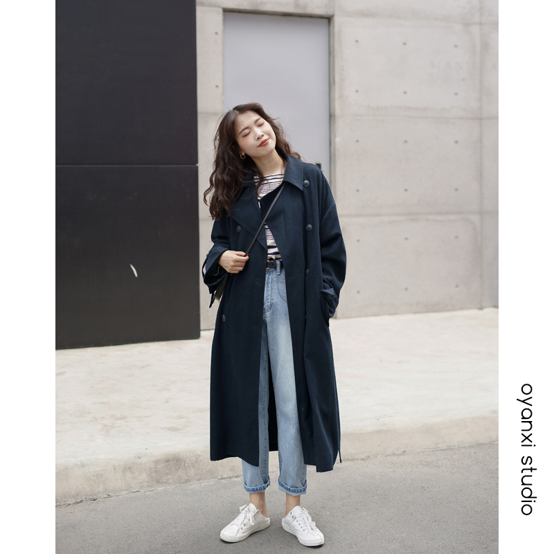 Ouyang Xi medium and long windbreaker women's winter new Korean loose over-the-knee coat cardigan lapel temperament jacket