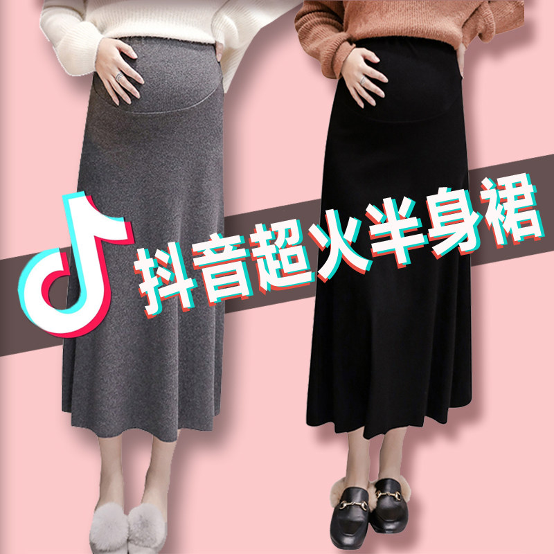 Pregnant woman knit semi-skirt autumn and winter half body dress fall adjustable half-body length skirt-boomer pregnant woman nepotism dress for children
